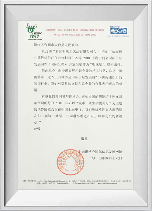 浙江明筑新材料股份有限公司坐落于浙江省風(fēng)景秀麗的5A級風(fēng)景名勝區(qū)天臺縣,是專業(yè)生產(chǎn)仿真植物墻的企業(yè),產(chǎn)品出口100多個國家,是生產(chǎn)仿真植物墻產(chǎn)品的先驅(qū)企業(yè),廠區(qū)現(xiàn)有建筑面積13萬平方米。公司建立的ISO9001國際質(zhì)量管理體系、ISO14001環(huán)境管理體系標示著明筑產(chǎn)品的優(yōu)良品質(zhì);明筑擁有優(yōu)秀的技術(shù)研發(fā)能力先后獲得的歐美多個國家七十多項專利,公司自主研發(fā)多條生產(chǎn)線設(shè)備。榮獲國家高新技術(shù)企業(yè)、浙江省名牌產(chǎn)品、浙江省出口名牌企業(yè)、浙江省知名商號、浙江省誠信企業(yè)、浙江省信用管理示范企業(yè)、浙江省科技型企業(yè)、浙江省成長型企業(yè)和臺州市級的專利示范企業(yè)、與企業(yè)技術(shù)中心等榮譽稱號。