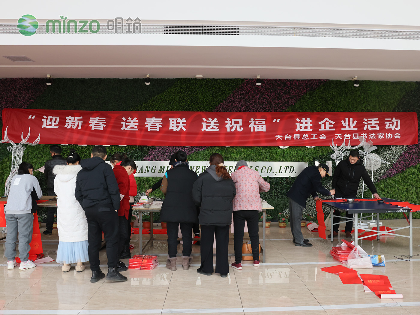 1月21日,天臺縣總工會連同縣書法家協(xié)會來到明筑公司開展送春聯(lián)服務。